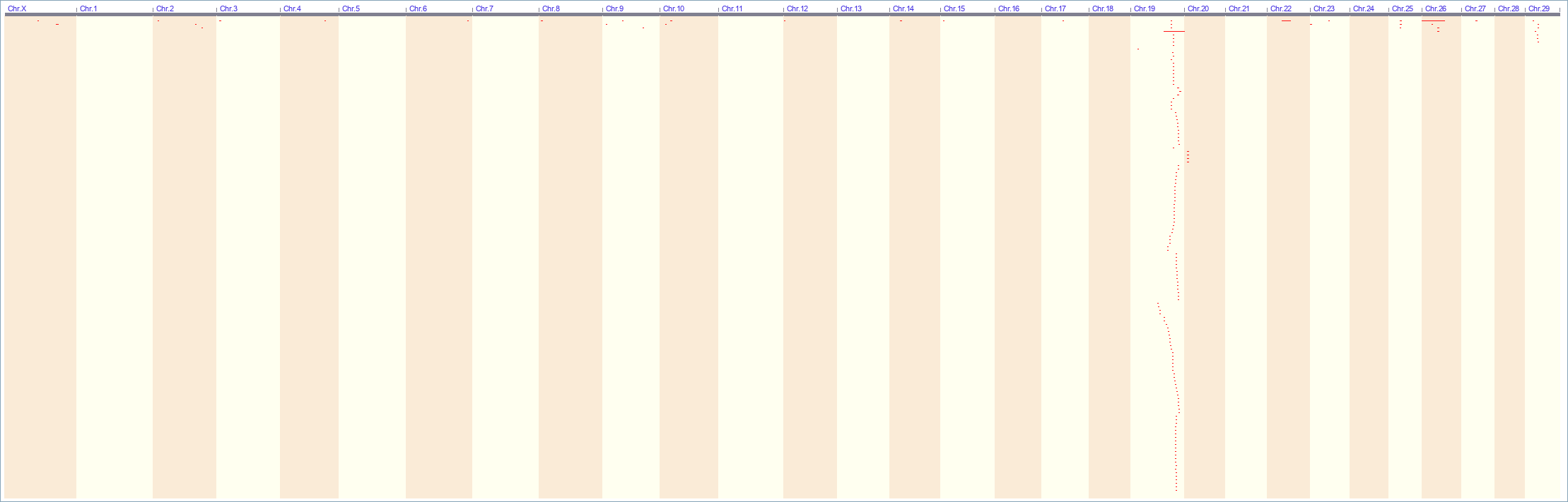 Whole genome plot of QTL/association data for trait