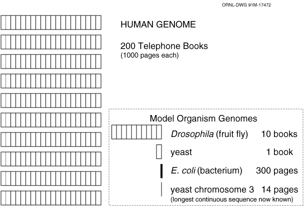 If the DNA sequence of the human genome were compiled in books, the equivalent of 200 volumes the size of a Manhattan telephone book (at 1000 pages each) would be needed to hold it all. New data- analysis tools will be needed for understanding the information from genome maps and sequences.