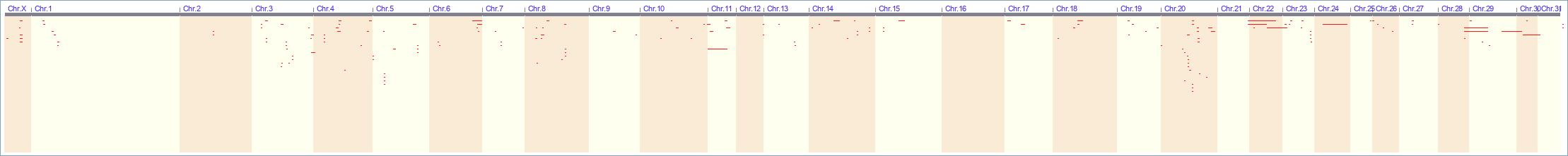 Whole genome plot of QTL/association data for trait
